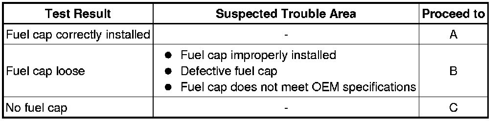 B -- CORRECTLY REINSTALL OR REPLACE FUEL CAP ASSEMBLY