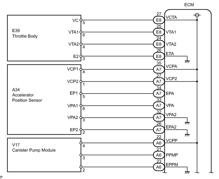 (b) Disconnect the A34 accelerator pedal position sensor connector.
