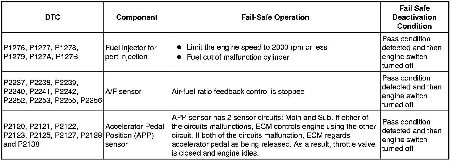 2GR-FSE ENGINE CONTROL SYSTEM: SFI SYSTEM: FAIL-SAFE CHART
