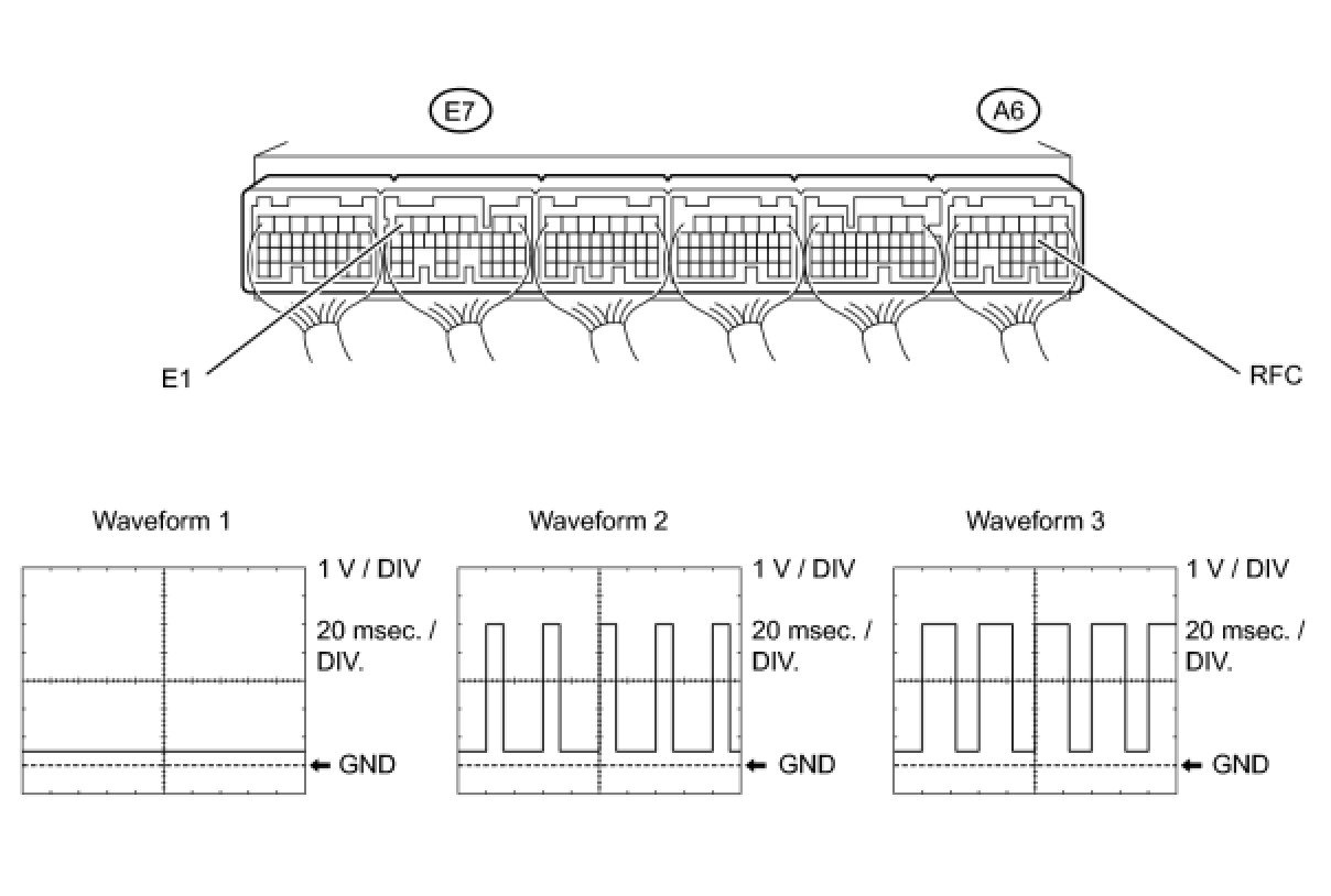 (4) Using the Techstream, check the waveform between terminals A6-10 (RFC) and E7-7 (E1) of the ECM.