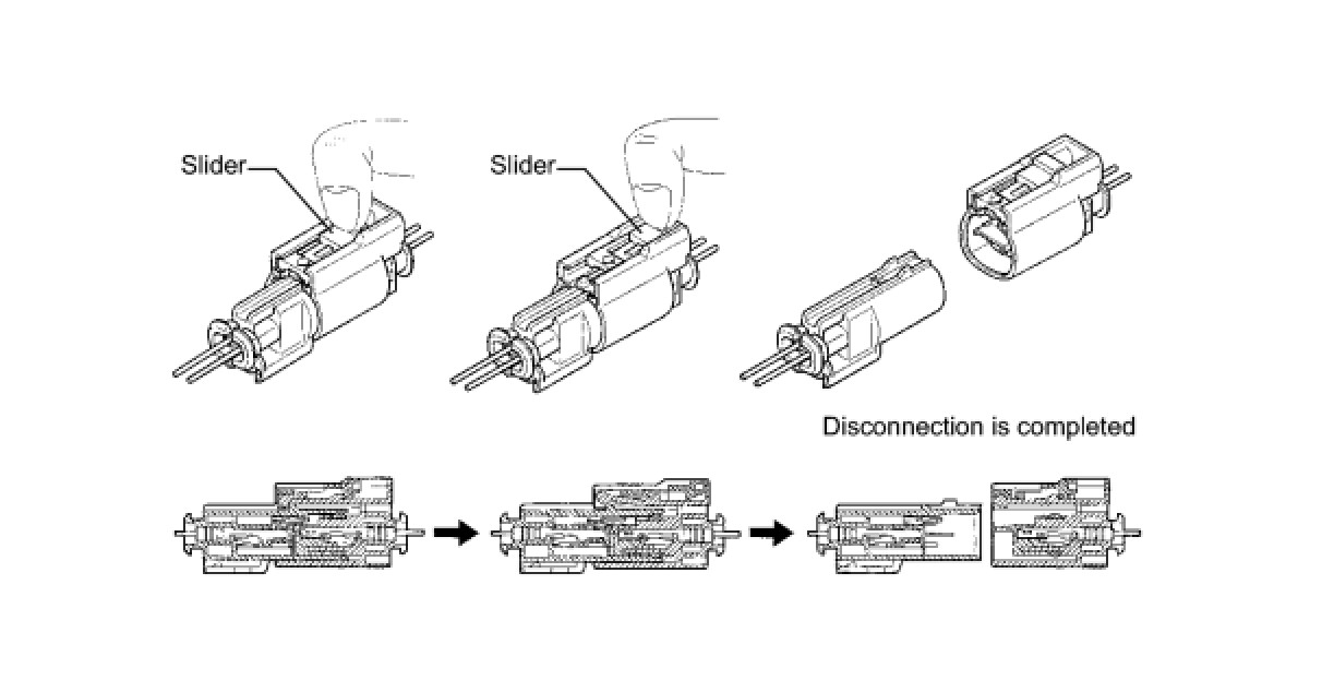(a) Connect the connector as shown in the illustration. (When locking, make sure that the slider returns to its original position and a click sound can be heard.)