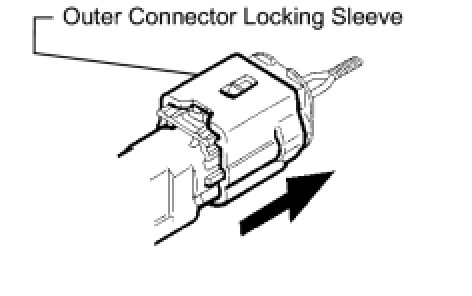 (a) While holding both the sides of the outer connector locking sleeve, slide the sleeve in the direction shown by the arrow.