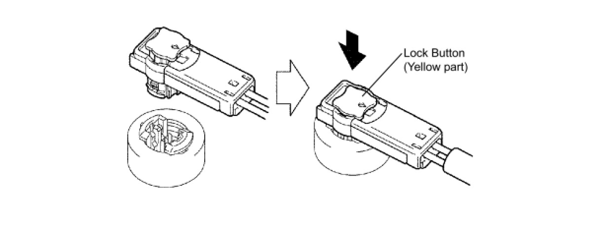 (b) Push down securely on the lock button. (yellow part) of the connector (When locking, a click sound can be heard.)