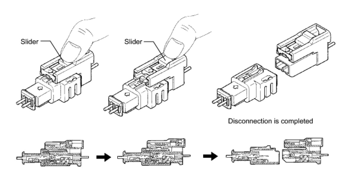 (b) When the connector lock is released, the connectors are disconnected.