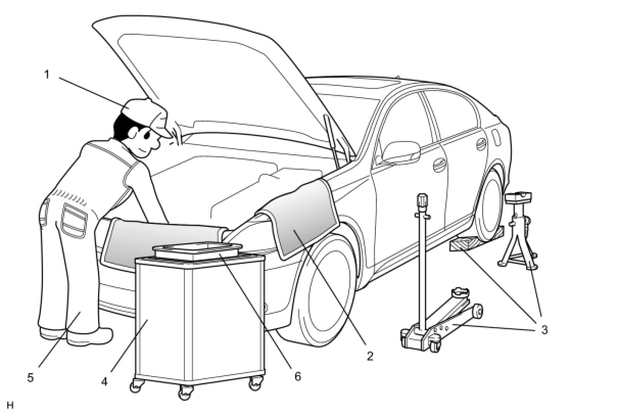(b) JACKING UP AND SUPPORTING VEHICLE