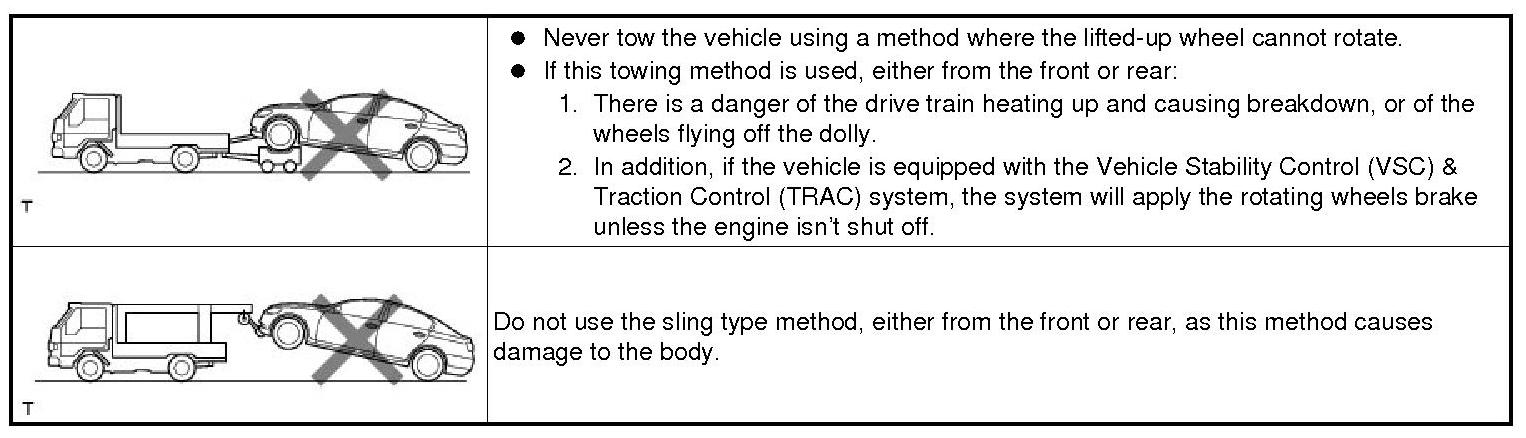 * For example, the towing methods shown below are dangerous or damage the vehicle, so do not use them.