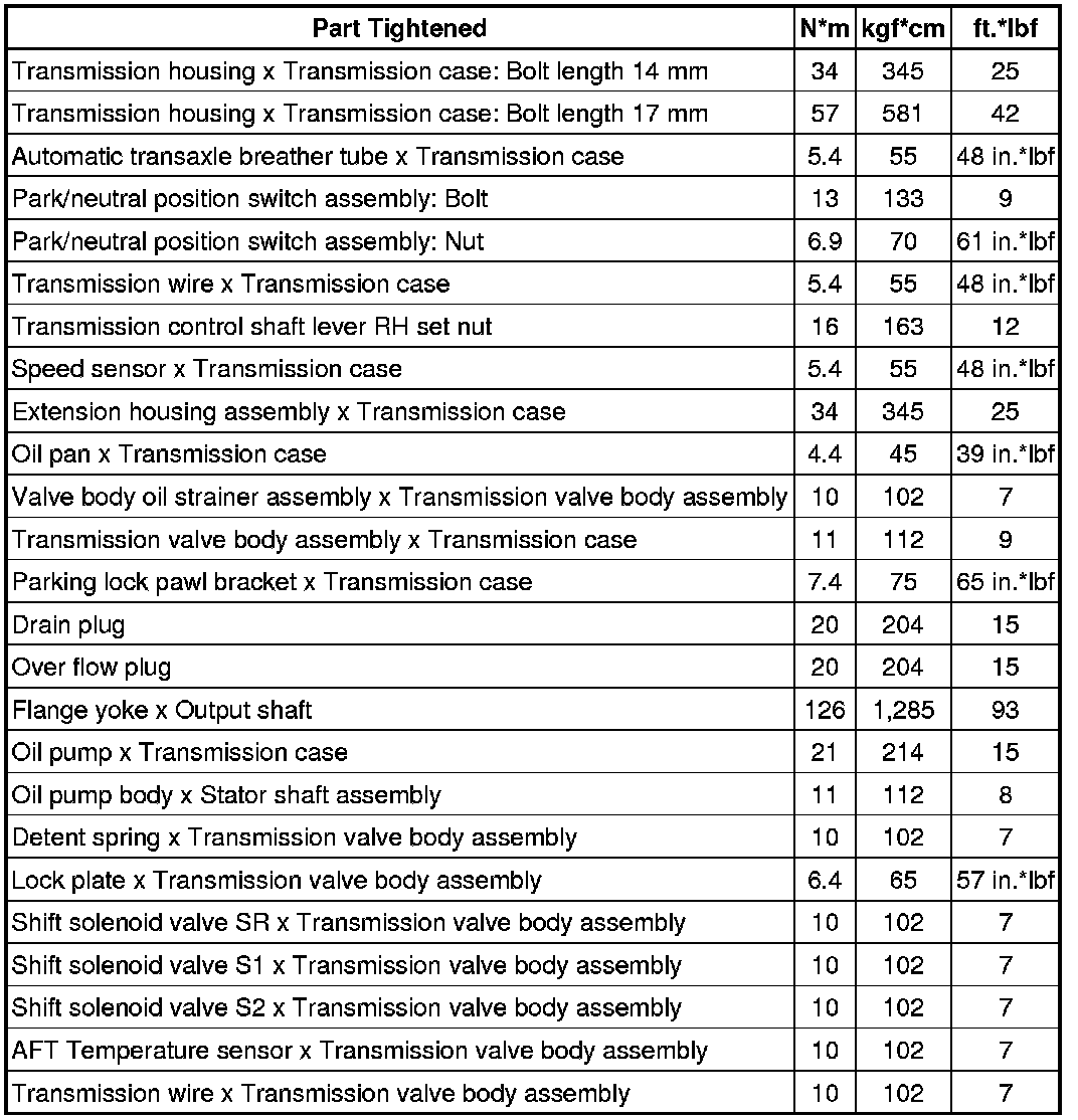 SERVICE SPECIFICATIONS: A760E AUTOMATIC TRANSMISSION: TORQUE SPECIFICATIONS