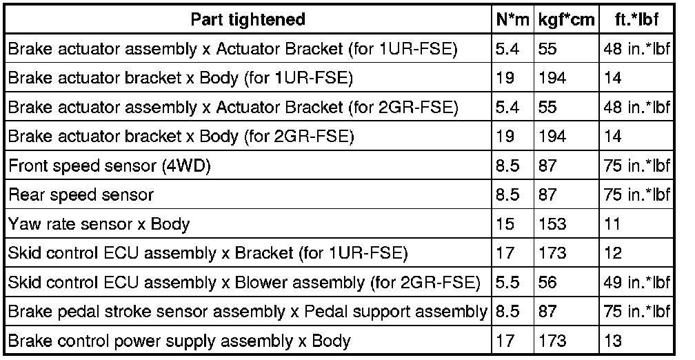 SERVICE SPECIFICATIONS: BRAKE CONTROL: TORQUE SPECIFICATIONS