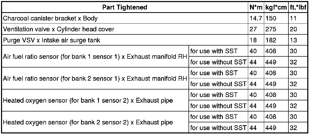 SERVICE SPECIFICATIONS: 2GR-FSE EMISSION CONTROL: TORQUE SPECIFICATIONS