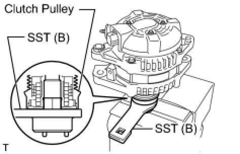 (e) Fit SST (B) to the clutch pulley.