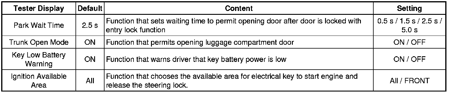 11. SMART ACCESS SYSTEM WITH PUSH-BUTTON START (FOR DOOR LOCK) (ENTRY UNLOCK MODE SWITCHING FUNCTION)