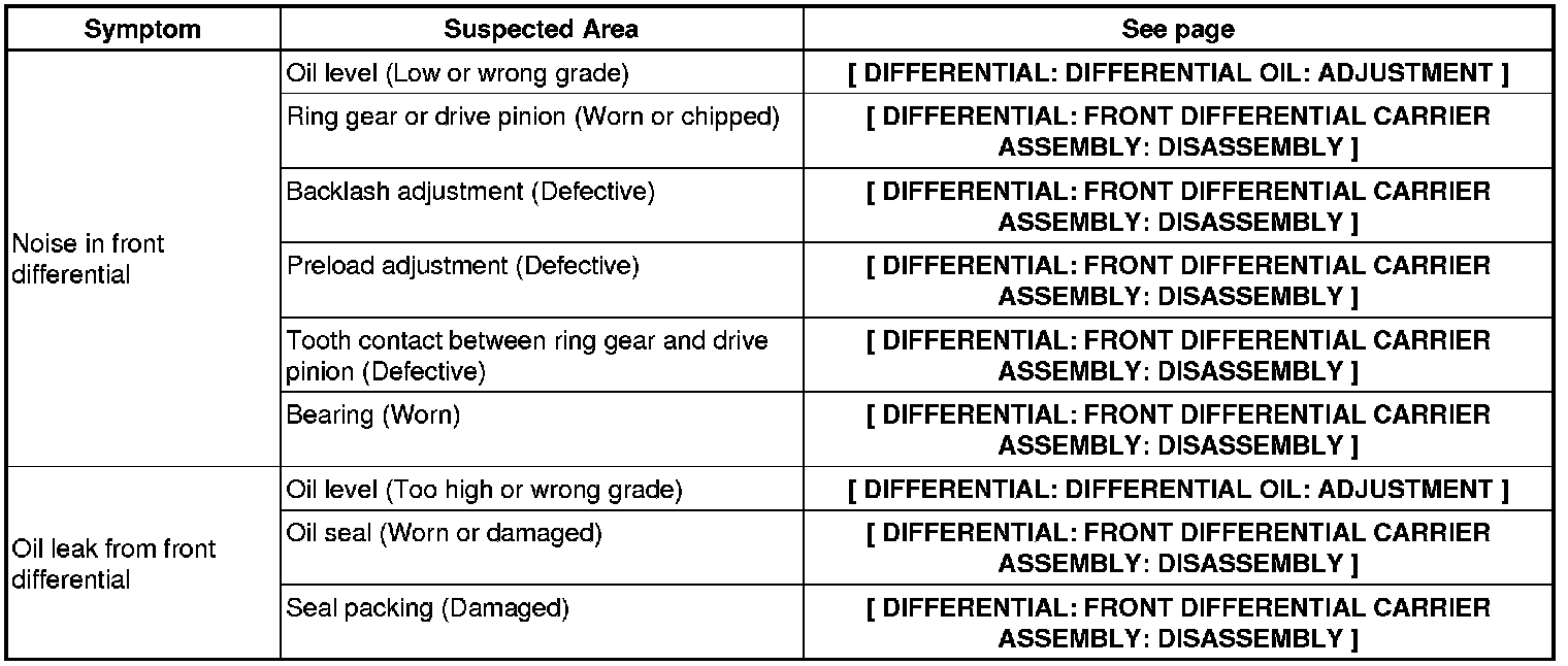 DIFFERENTIAL: DIFFERENTIAL SYSTEM: PROBLEM SYMPTOMS TABLE