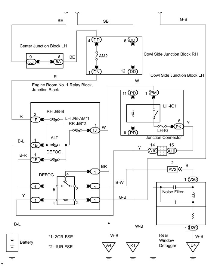 B -- INSPECT FUSE (DEFOG, ALT, LH J/B-AM, RH J/B-B, AM2, LH-IG)