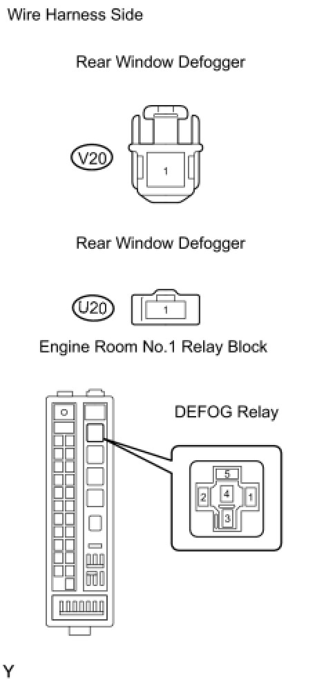 (a) Disconnect the U20 and V20 defogger connectors.