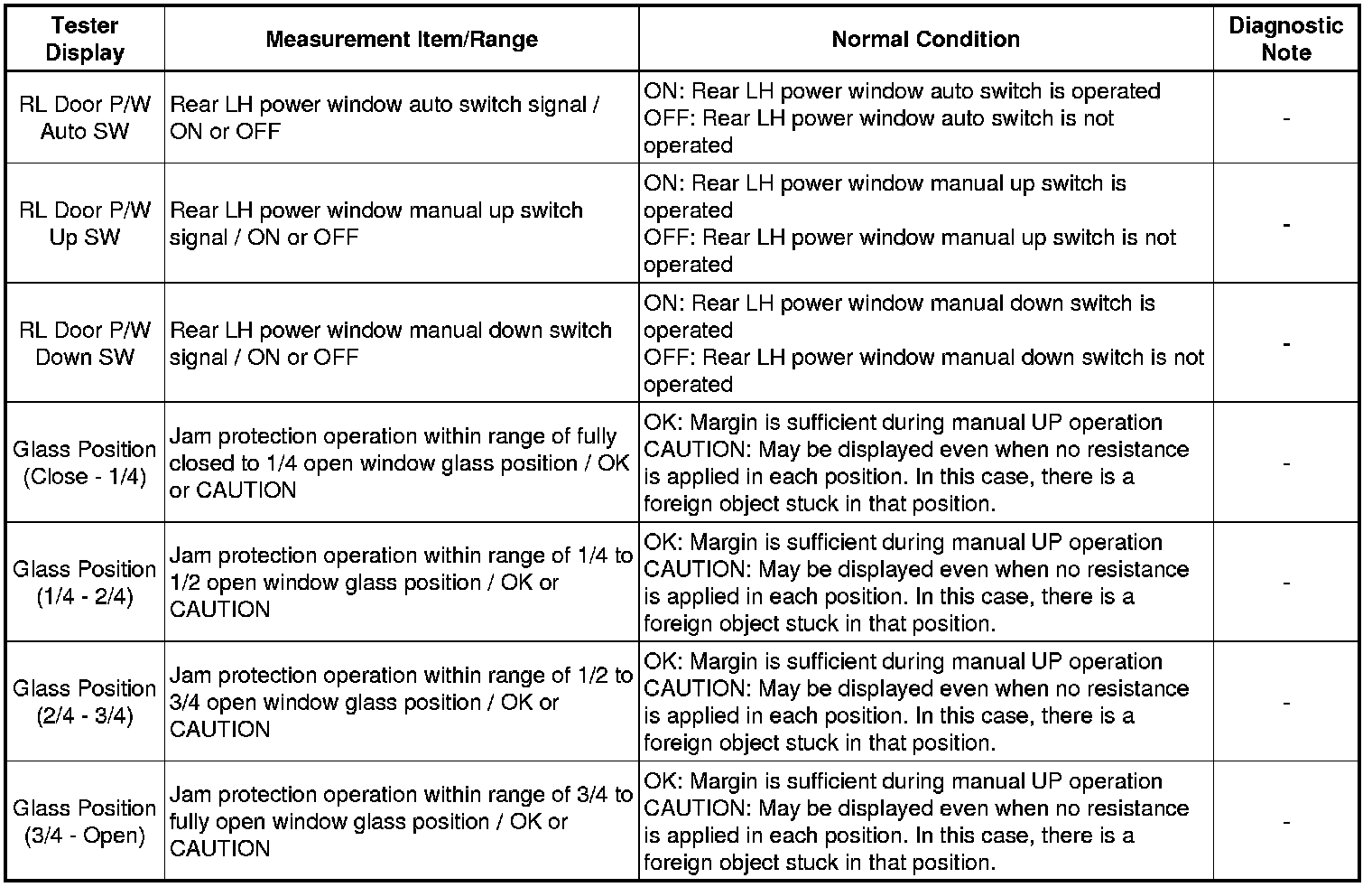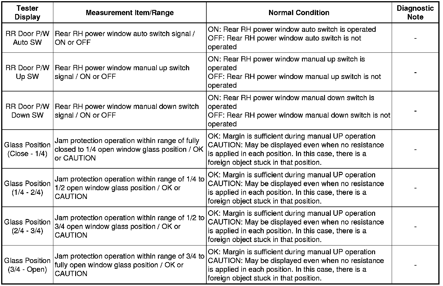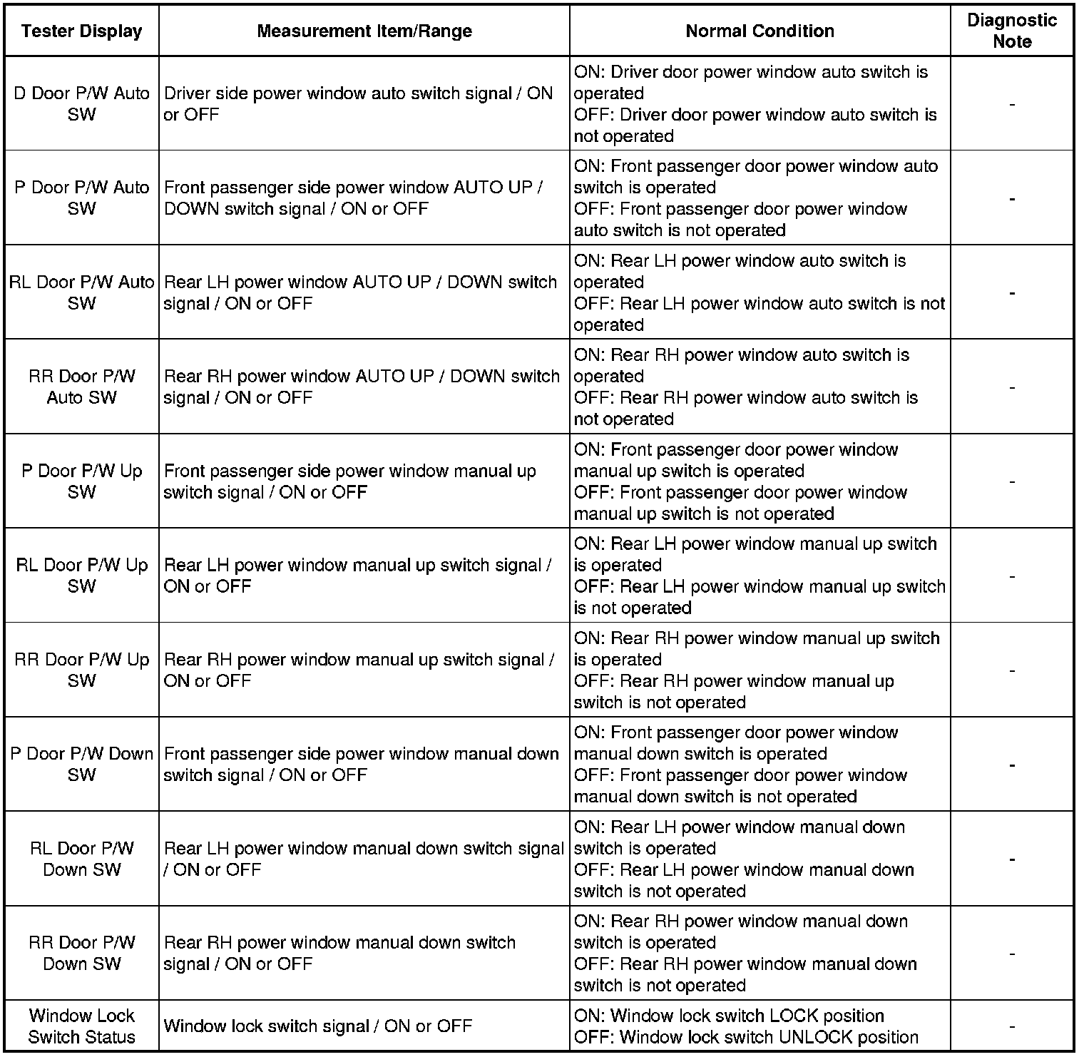 WINDSHIELD / WINDOW GLASS: POWER WINDOW CONTROL SYSTEM: DATA LIST / ACTIVE TEST