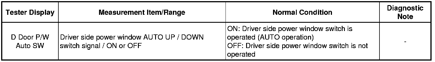 - Driver Side Power Window Auto Up / Down Function does not Operate with Power Window Master Switch
