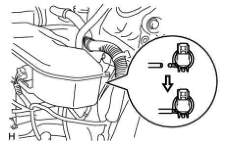 (b) Install the upper part of the washer jar and pump to the windshield washer jar and pump.