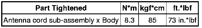 SERVICE SPECIFICATIONS: CELLULAR COMMUNICATION: TORQUE SPECIFICATIONS