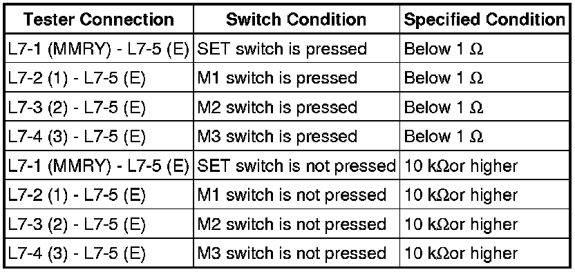 SEAT: SEAT MEMORY SWITCH: INSPECTION