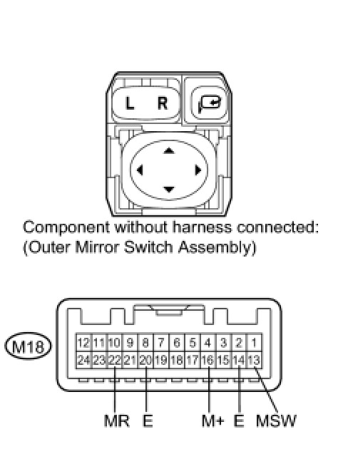 1. INSPECT OUTER MIRROR SWITCH ASSEMBLY (w/o Seat Position Memory System)