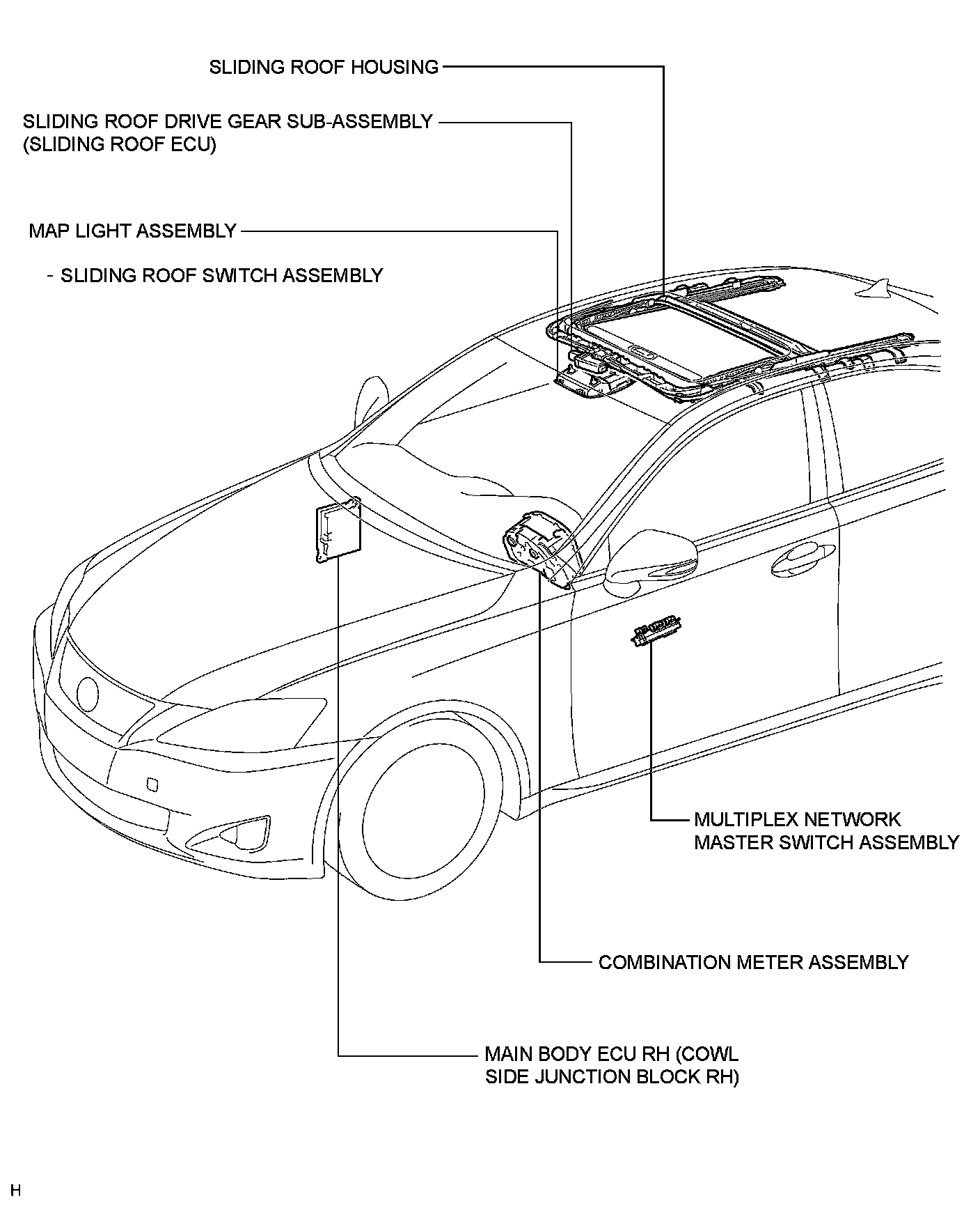 SLIDING ROOF: SLIDING ROOF SYSTEM: PARTS LOCATION