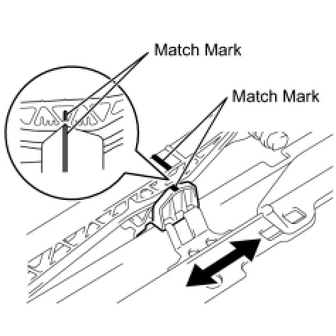 2 Slide the sliding roof drive cable to align the marks as shown in the illustration.