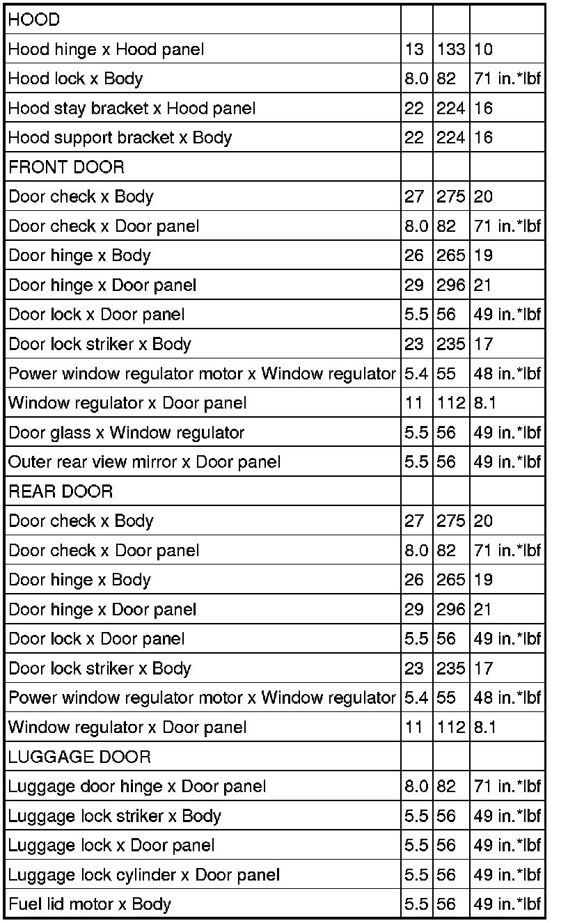 / DOOR: TORQUE SPECIFICATIONS