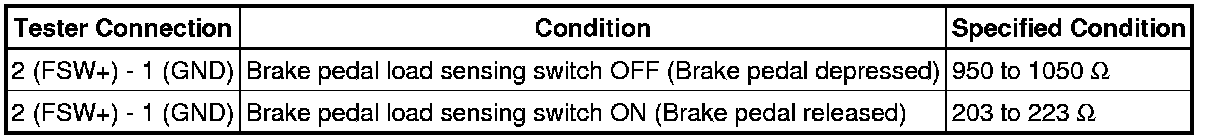 (d) If the value is not as specified, replace the brake pedal load sensing switch.