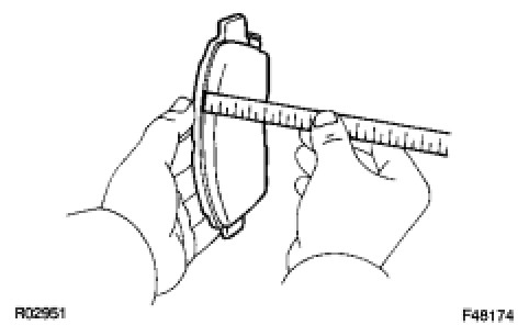 (b) If the pad lining thickness is less than the minimum, replace the brake pads.
