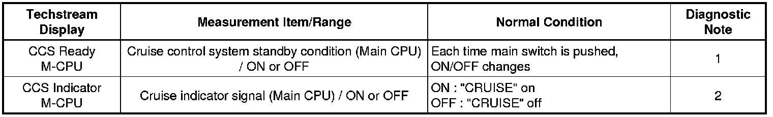 (e) Check the Data List for proper functioning of the CRUISE main indicator light.