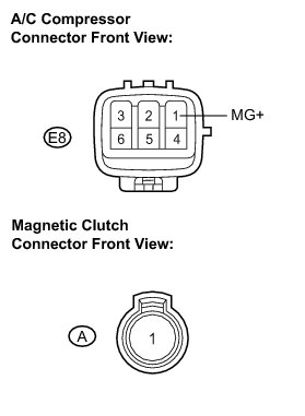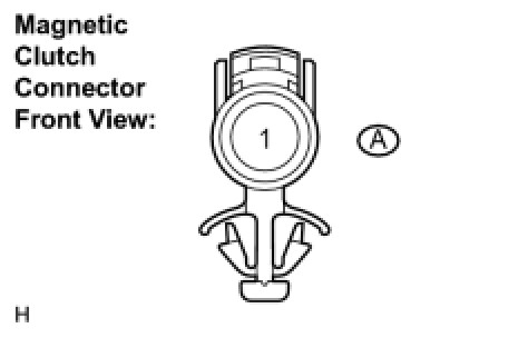 (c) When connector terminal A1 is connected to the positive (+) battery terminal, check that the following occurs: 1) the magnetic clutch's operating sound can be heard, and 2) the magnetic clutch's hub and rotor lock.