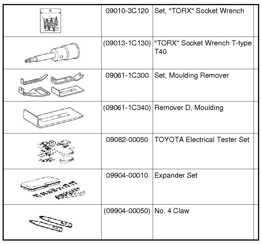 PREPARATION: AIR CONDITIONING: RECOMMENDED TOOLS