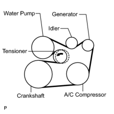 (1) Put the V-ribbed belt on every part except the tensioner pulley as shown in the illustration.
