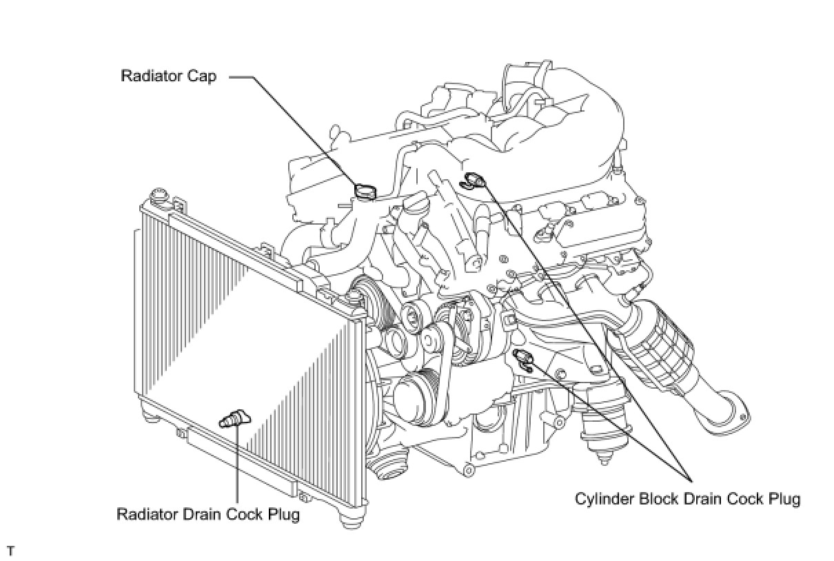 (a) Tighten all the plugs and fill the radiator with TOYOTA Super Long Life Coolant (SLLC).