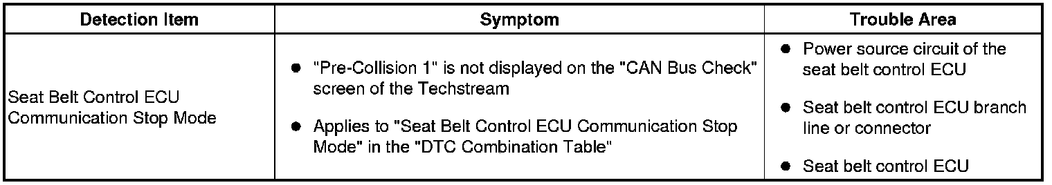 CAN COMMUNICATION: CAN COMMUNICATION SYSTEM: Seat Belt Control ECU Communication Stop Mode