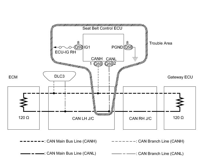 NG -- REPAIR OR REPLACE SEAT BELT CONTROL ECU BRANCH WIRE OR CONNECTOR (CAN-H, CAN-L)