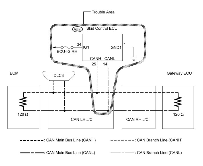 NG -- REPAIR OR REPLACE SKID CONTROL ECU BRANCH WIRE OR CONNECTOR (CAN-H, CAN-L)