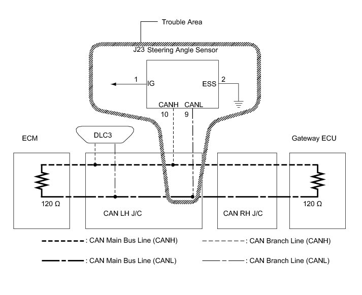 1. CHECK OPEN IN CAN BUS WIRE (STEERING ANGLE SENSOR BRANCH LINE)