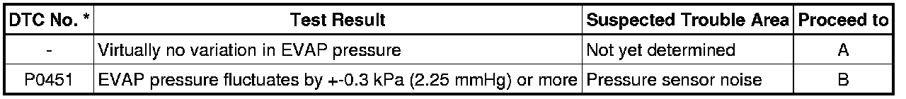 If the 0.02 inch reference pressure difference between the first and second checks is greater than the specification, the DTCs corresponding to the reference pressure (P043E, P043F, P0441, P0455, P0456, P2401 and P2420) will all be stored.