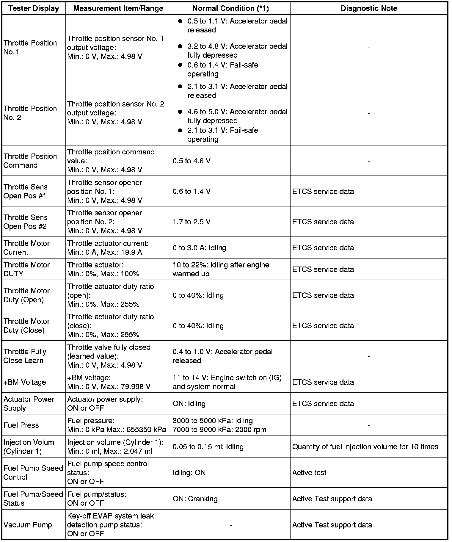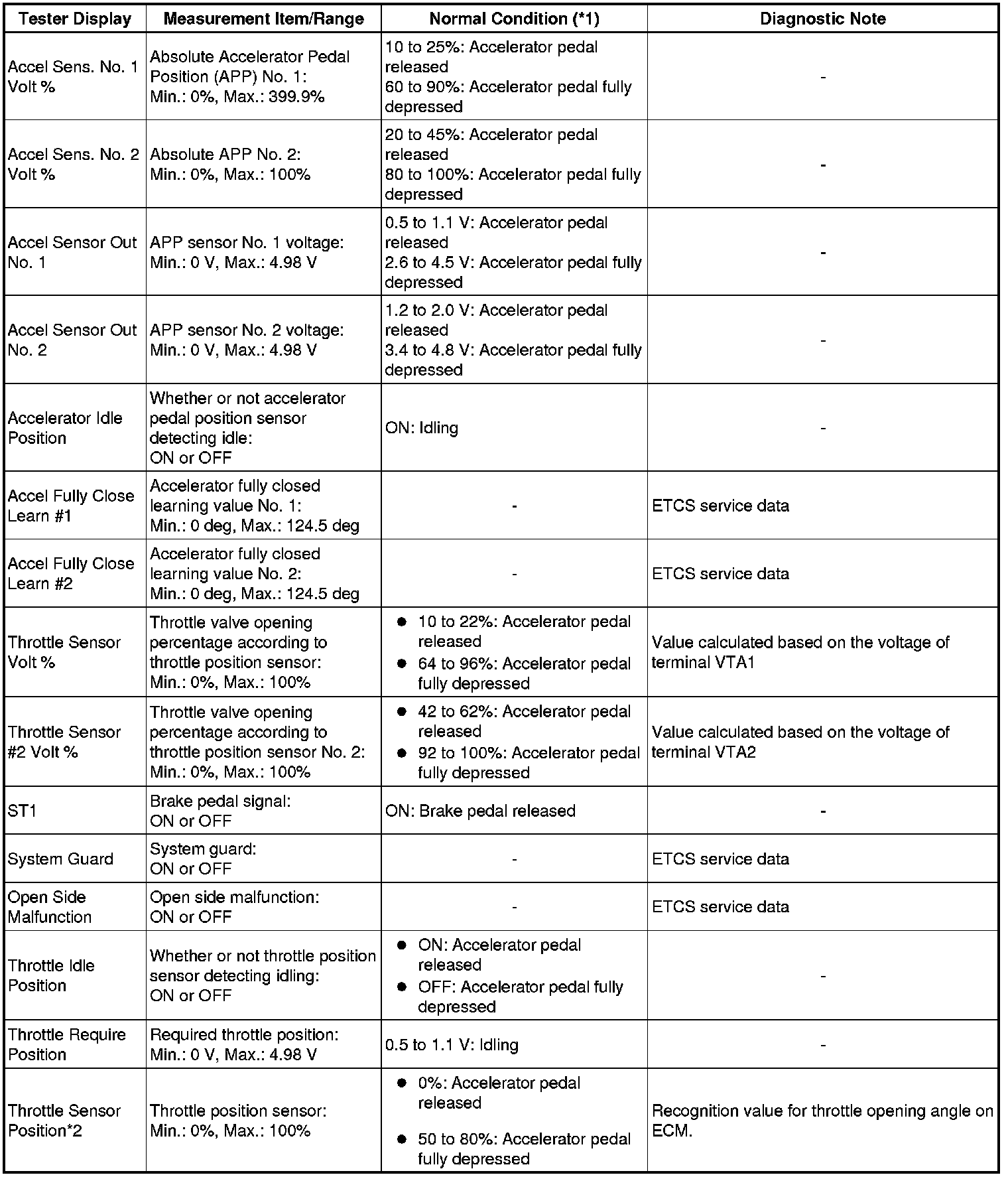 * *2: Excluding throttle valve opening percentage due to Idle Speed Control (ISC).