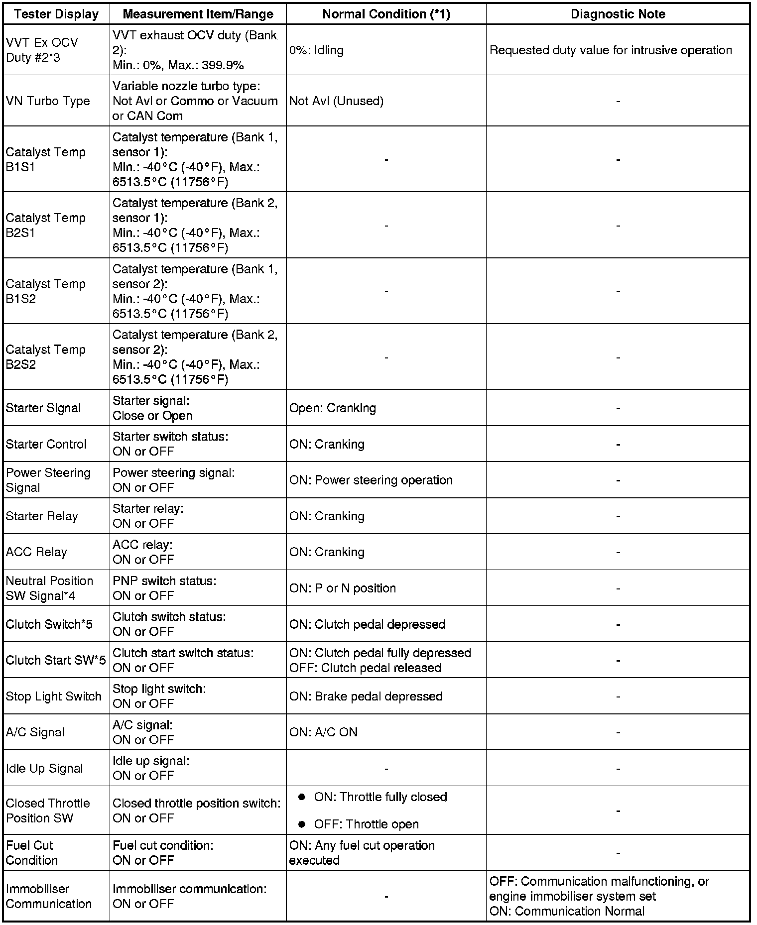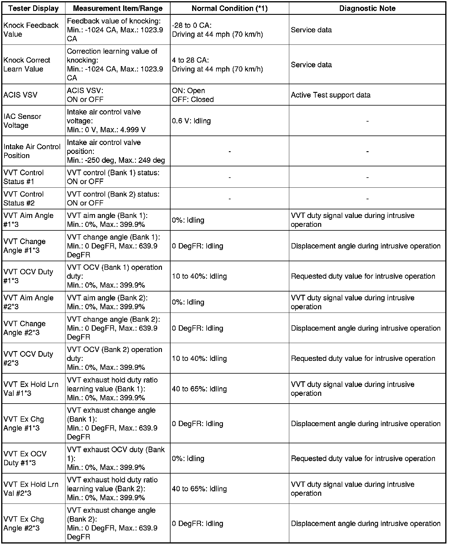 * *3: Data List values are only displayed when performing the following Active Test: VVT B1, VVT B2, VVT EX B1 and VVT EX B2. For other Active Test, the Data List value will be 0.
