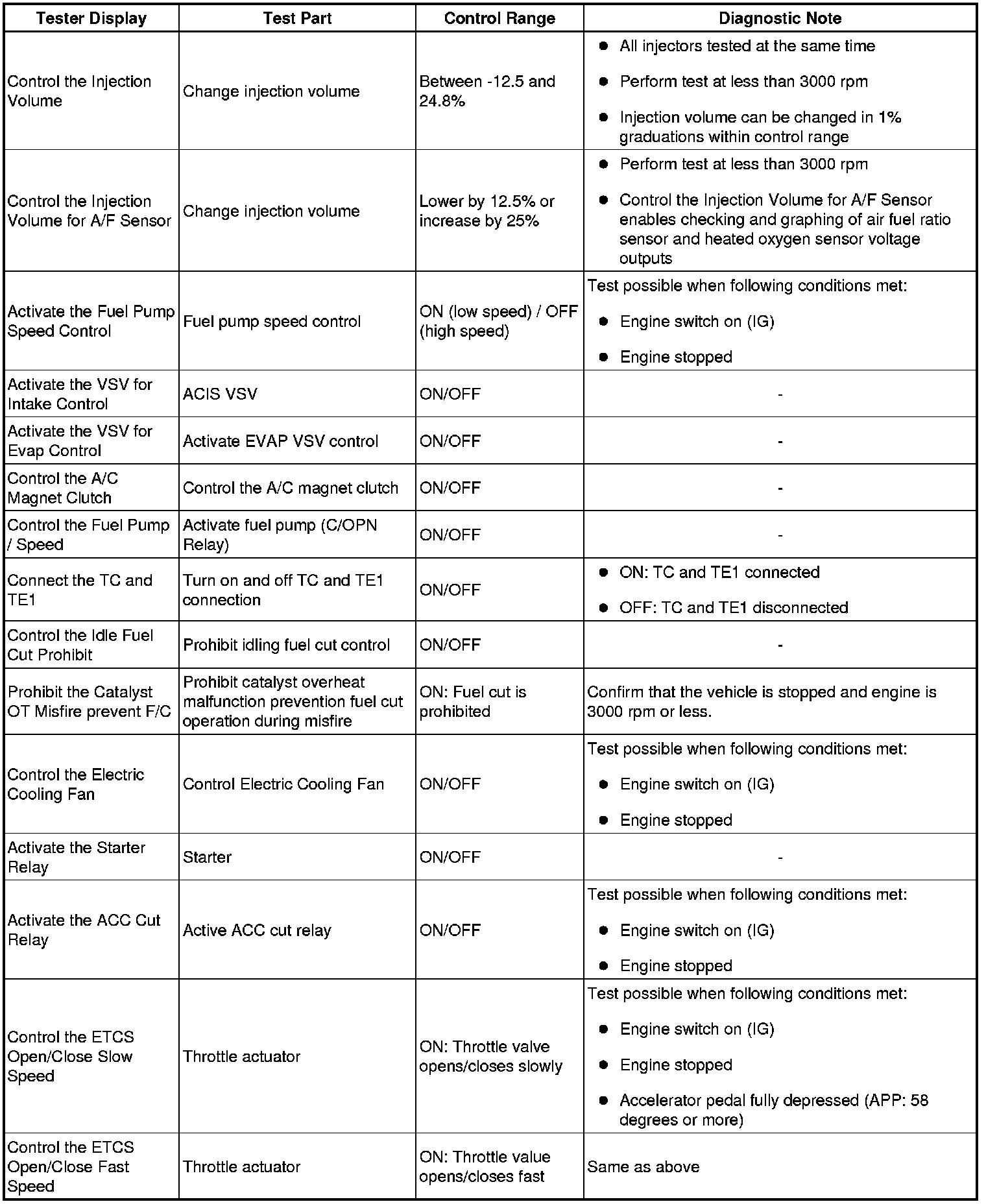 (e) Perform an Active Test by referring to the table below.