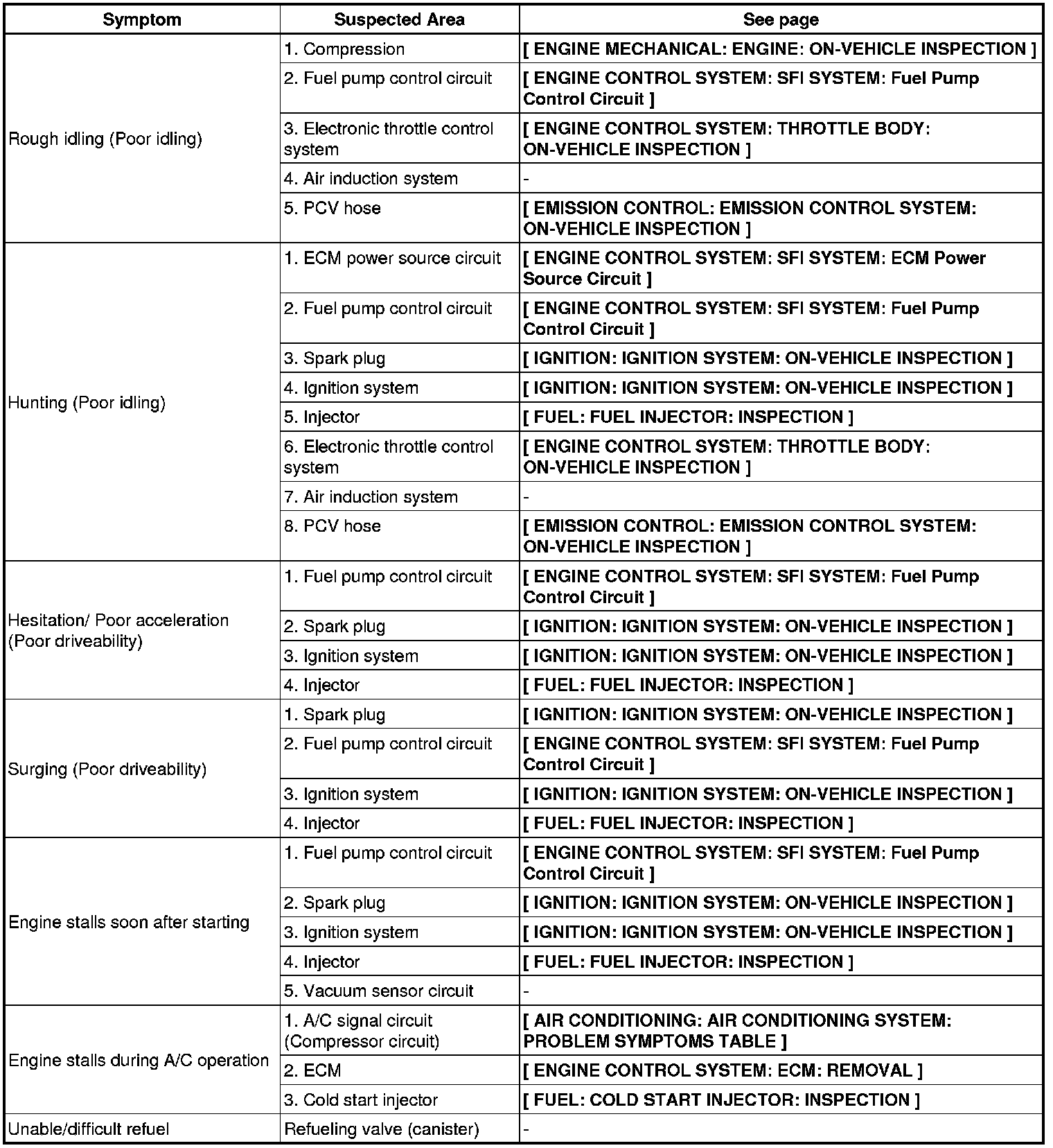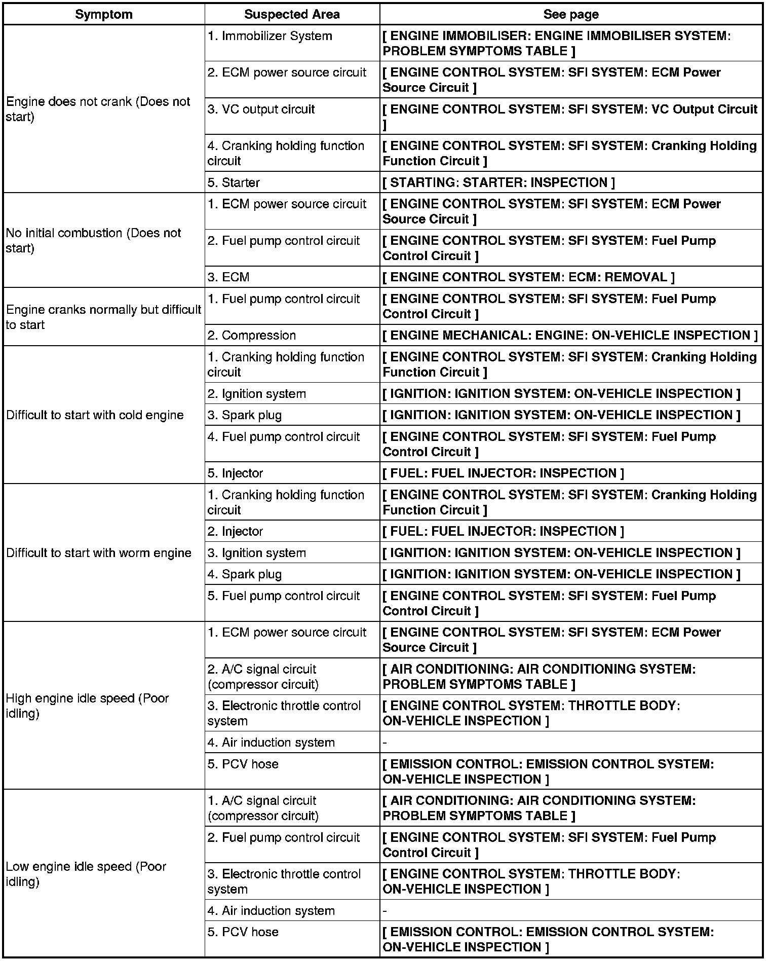 4GR-FSE ENGINE CONTROL SYSTEM: SFI SYSTEM: PROBLEM SYMPTOMS TABLE