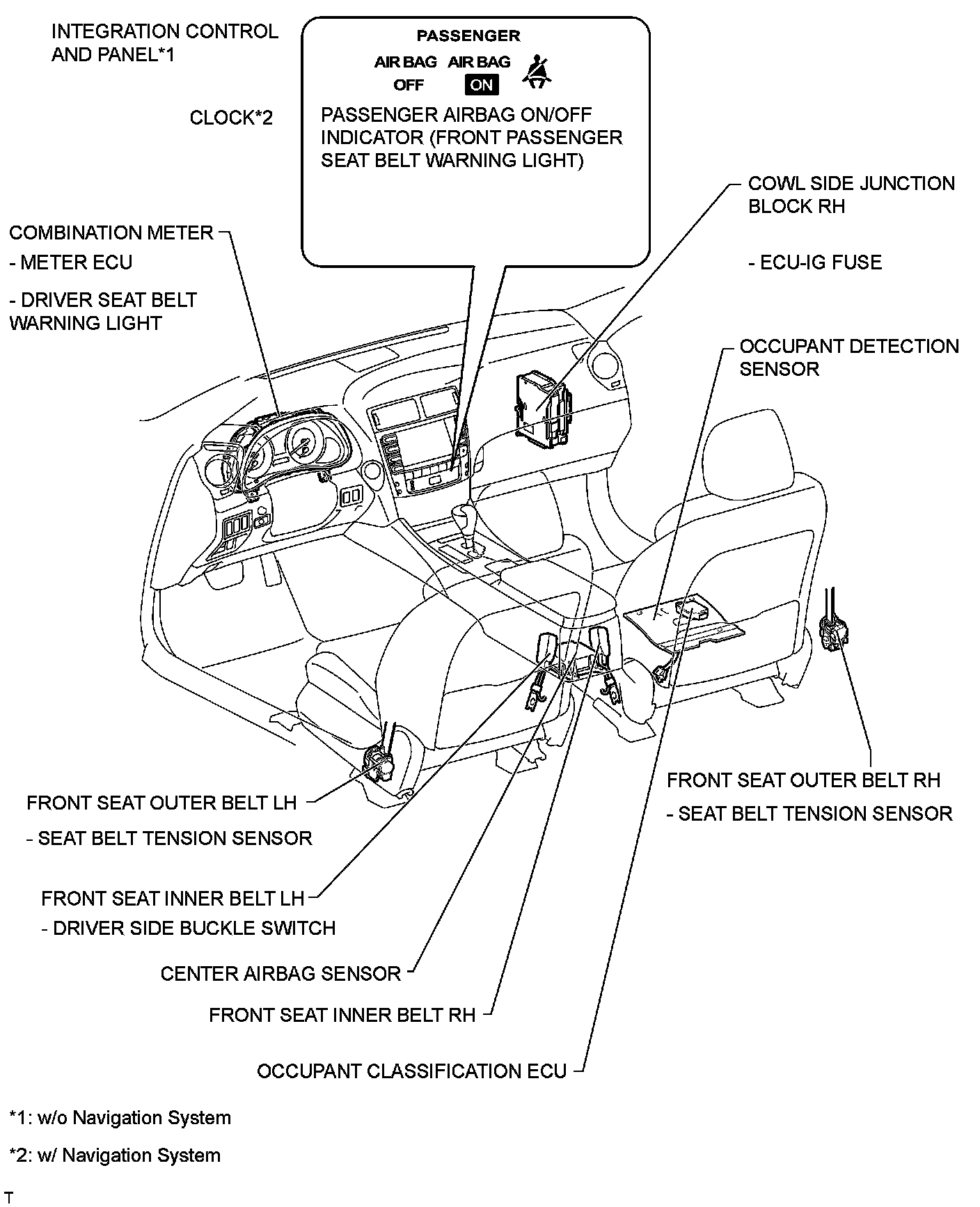 SEAT BELT: SEAT BELT WARNING SYSTEM (w/ Occupant Classification System): PARTS LOCATION