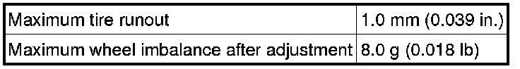SERVICE SPECIFICATIONS: TIRE AND WHEEL: SERVICE DATA