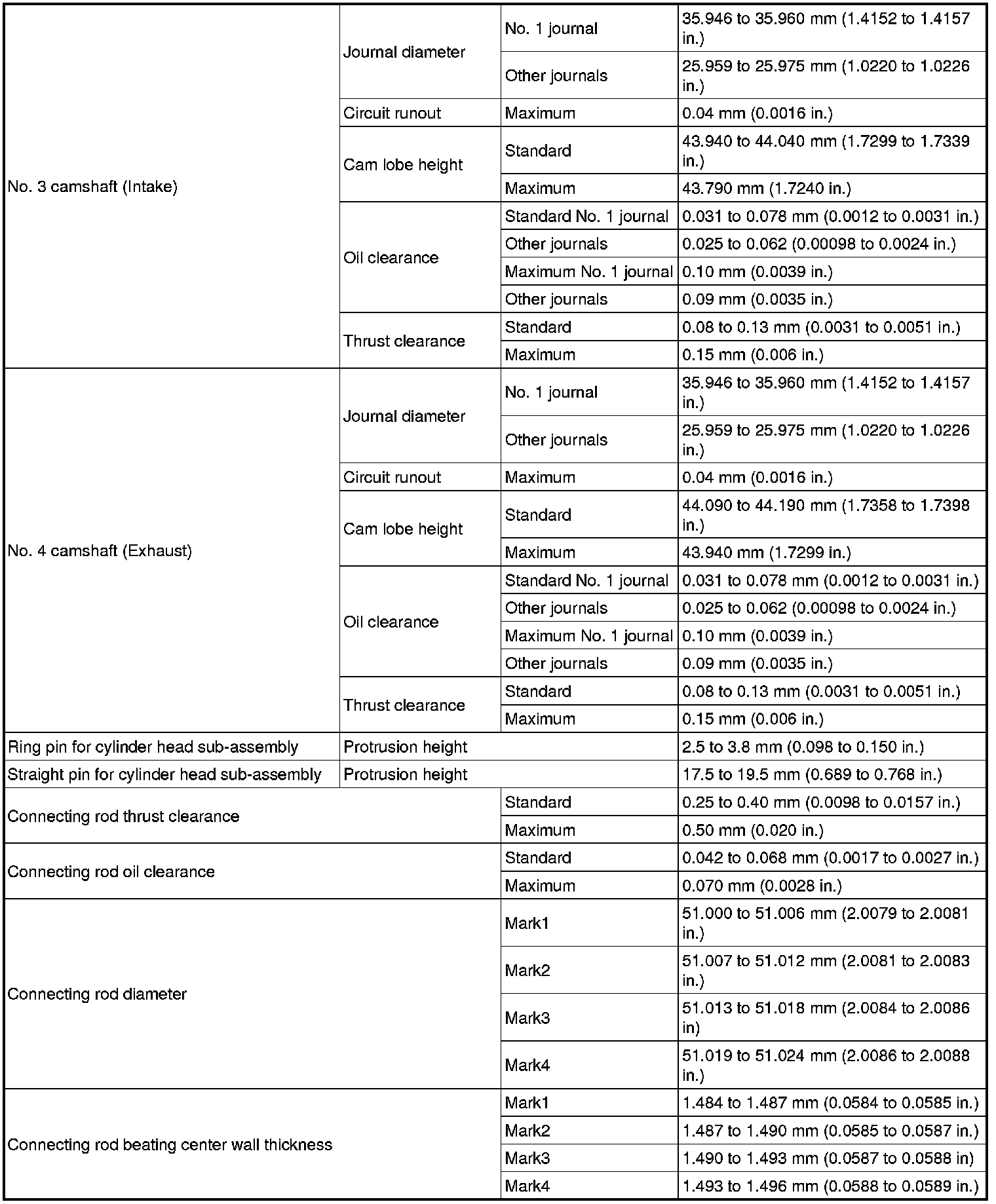 SERVICE SPECIFICATIONS: 4GR-FSE ENGINE MECHANICAL: SERVICE DATA