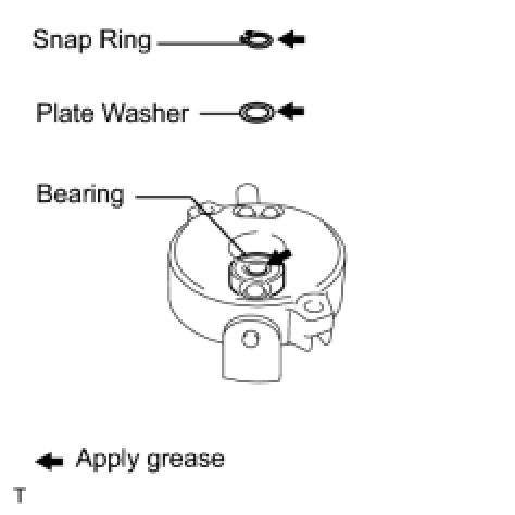 (a) Apply high-temperature grease to the plate washer, new snap ring and bearing, as shown in the illustration.