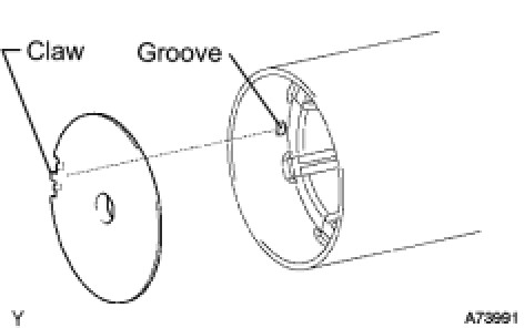 (a) Align the claw of the armature plate with the groove inside the starter yoke assembly, and install the starter armature plate.