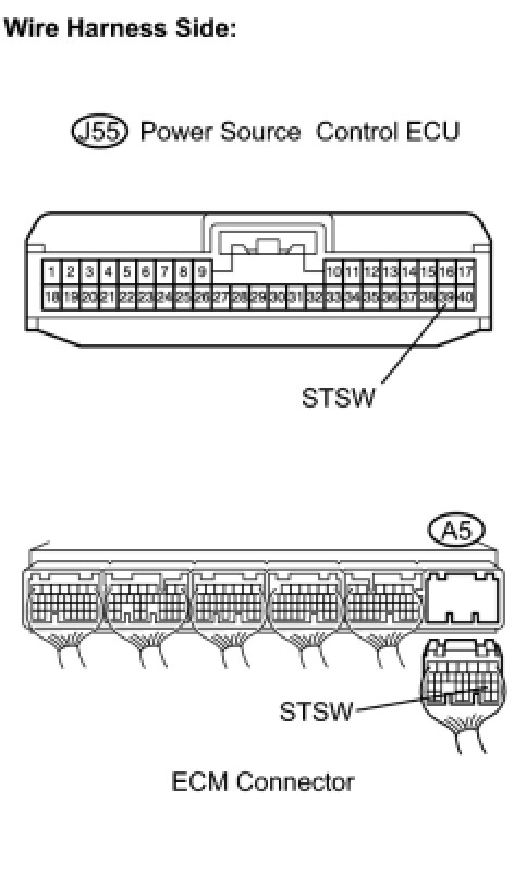 (a) Check the harness and the connectors between the power source control ECU and ECM.