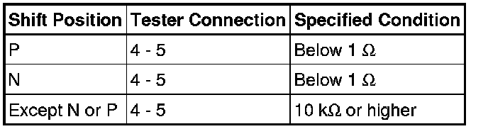 (b) Measure the resistance between each terminal shown below when the shift lever is moved to each range.